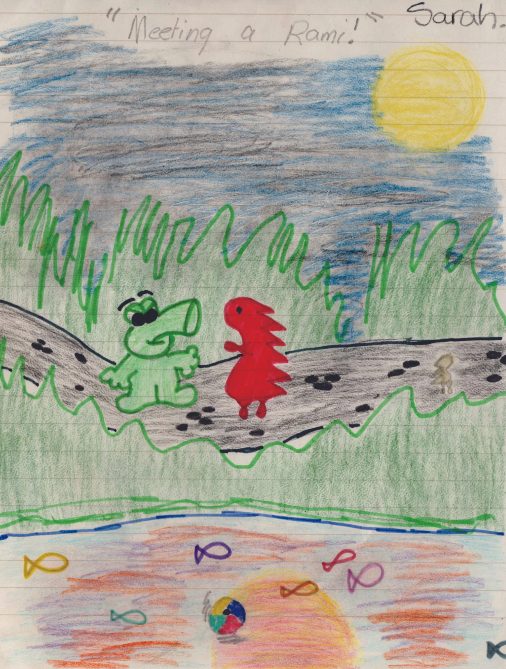 Sarah set to entertain herself and her brothers on the “boring” car trip and suggested that they each create a character. Sarah created Bingert, James created Rami and Peter created Mauish. Then came a book of the scenes they drew of their characters on that journey. Over the years since then those characters have become part of the Gauvin family and feature in themed birthday parties.